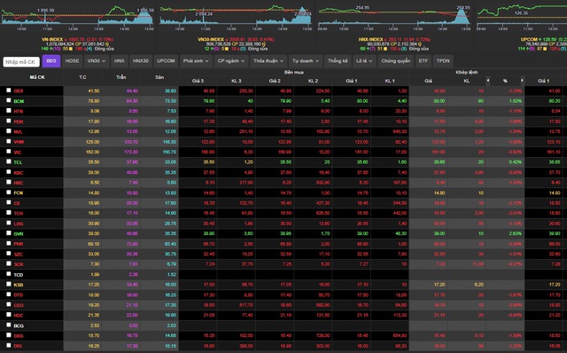 Theo dữ liệu giao dịch, sàn HSX đại diện cho chỉ số VN-Index ghi nhận 180 mã cổ phiếu đỏ lửa, trong khi có 149 mã tăng. Con số này trên sàn HNX là 102/72 và UpCom là 139/125.