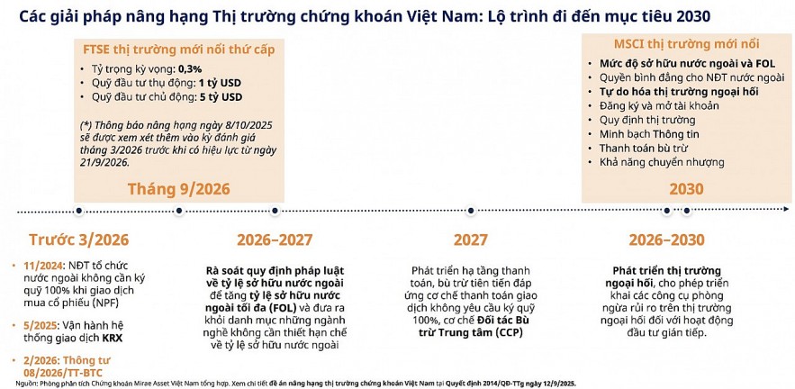 Về dài hạn, triển vọng tái định giá thị trường vẫn được duy trì khi Việt Nam tiếp tục theo đuổi lộ trình nâng hạng lên thị trường mới nổi của MSCI. Các cơ quan quản lý đang tập trung cải thiện một số tiêu chí quan trọng như giới hạn sở hữu nước ngoài, cơ chế thanh toán bù trừ trung tâm và sự phát triển của thị trường ngoại hối. Những cải cách này được kỳ vọng sẽ nâng cao chất lượng cấu trúc thị trường, cải thiện thanh khoản và tạo môi trường đầu tư thuận lợi hơn cho nhà đầu tư quốc tế.