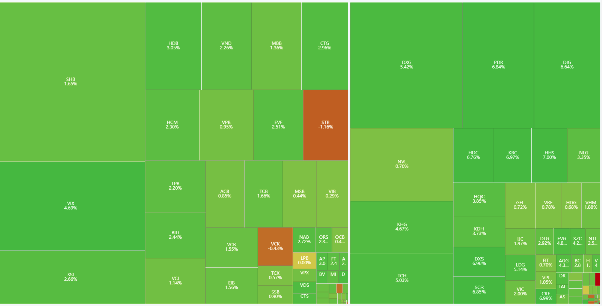 Sắc xanh lan tỏa trên VN-Index phiên 27/3.