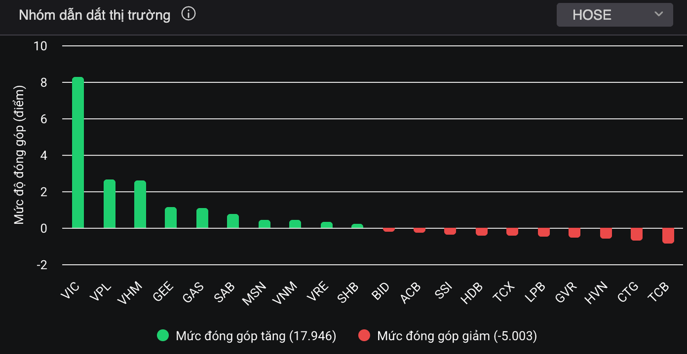 Nhóm Vingroup chi phối đà tăng của VN-Index.