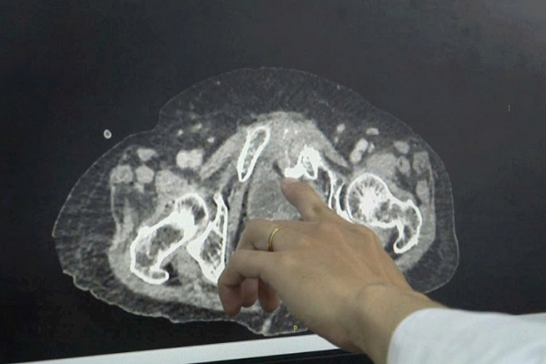 Ngay khi tiếp nhận bệnh nhân, bằng sự nhạy bén lâm sàng và kinh nghiệm xử trí các ca bệnh phức tạp, ê-kíp Khoa Ngoại Tiết niệu, Bệnh viện đa khoa Xuyên Á đã không bỏ qua những dấu hiệu bất thường. Kết quả chụp CT ổ bụng kết hợp chụp bàng quang có bơm thuốc cản quang xác nhận chẩn đoán: bàng quang bị vỡ trong phúc mạc.