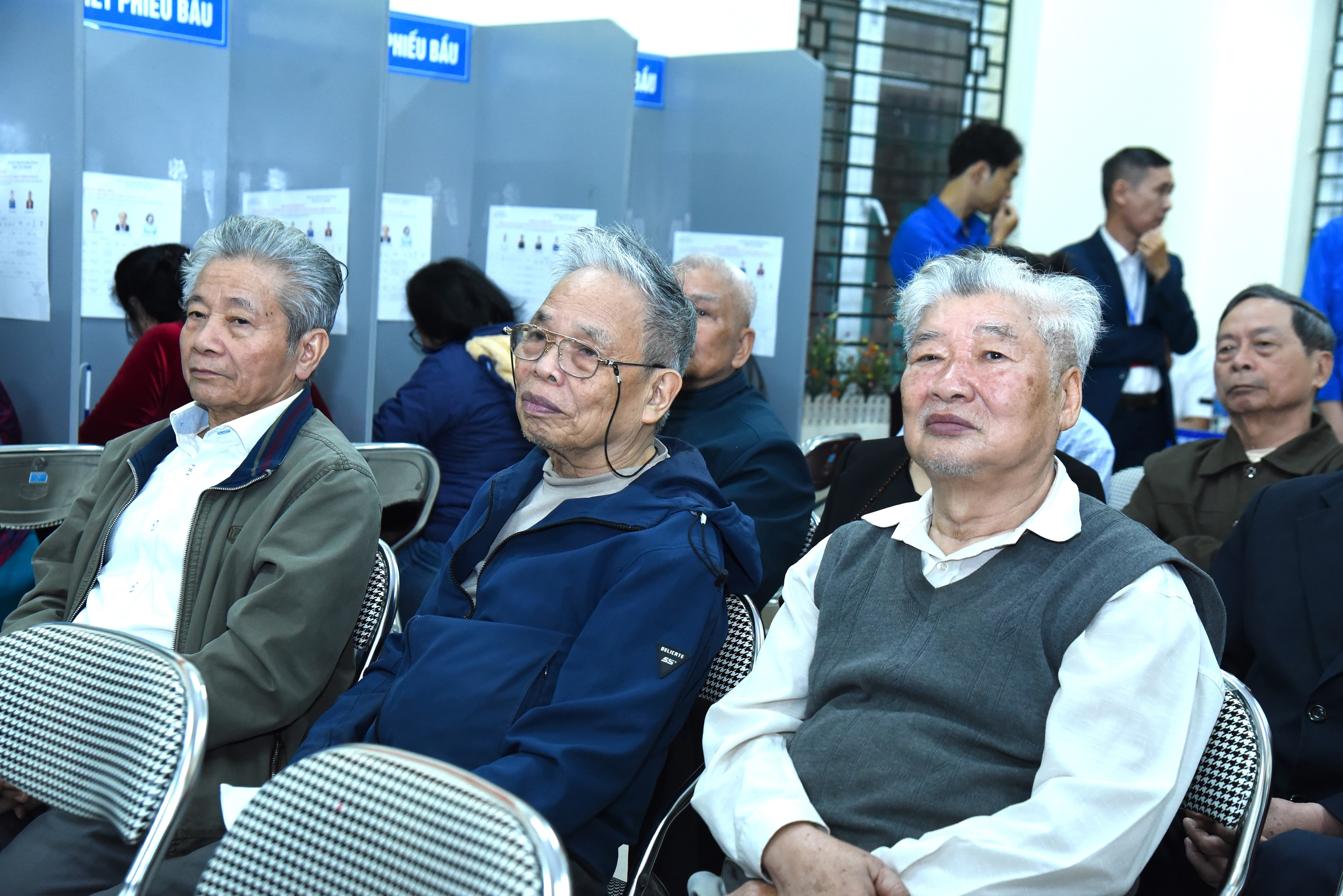 Các cử tri là người cao tuổi có mặt từ sớm để dự lễ khai mạc cuộc bầu cử. Ảnh: Xuân Quý