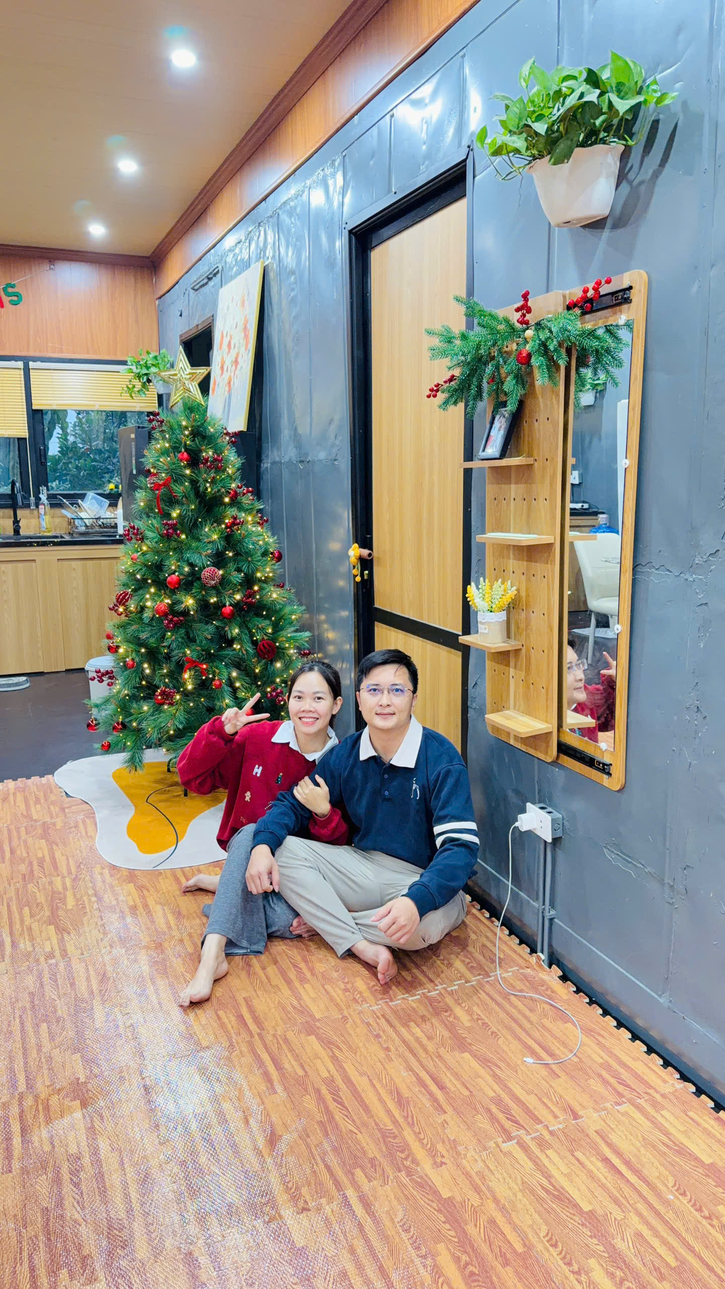 Vợ chồng chị Linh chụp ảnh trong căn nhà container mà họ dành 3 tháng để hoàn thiện