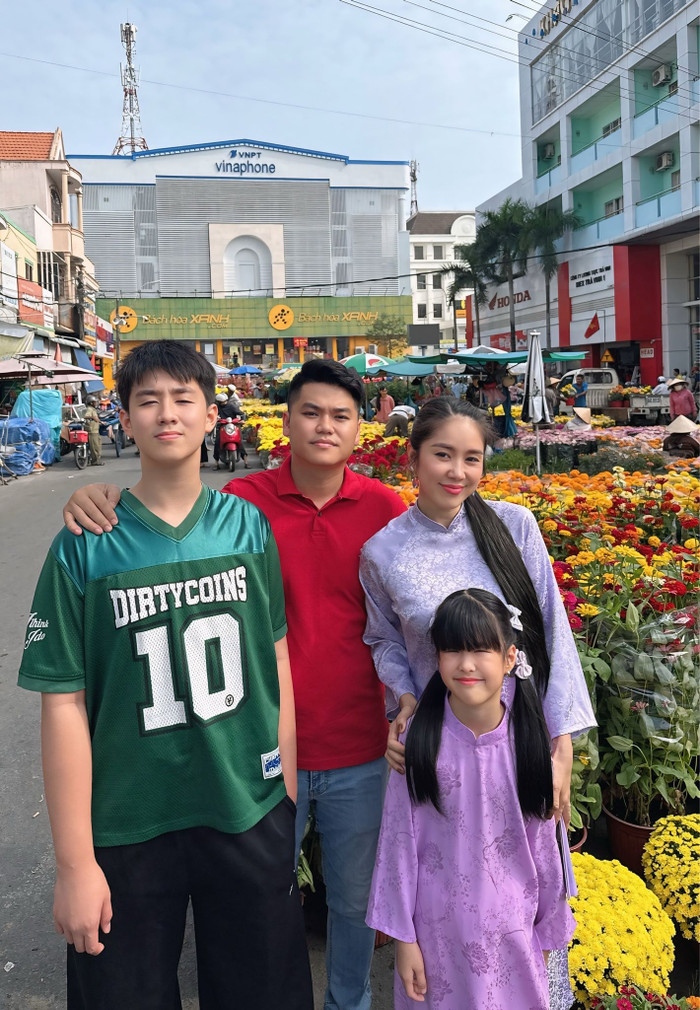 Mới đây, Lê Phương chia sẻ loạt khoảnh khắc đời thường ghi lại cảnh cô cùng ông xã Trung Kiên, hai con và gia đình bên ngoại gồm ba mẹ, em gái rộn ràng đi chợ hoa, sắm sửa chuẩn bị đón Tết Nguyên đán.