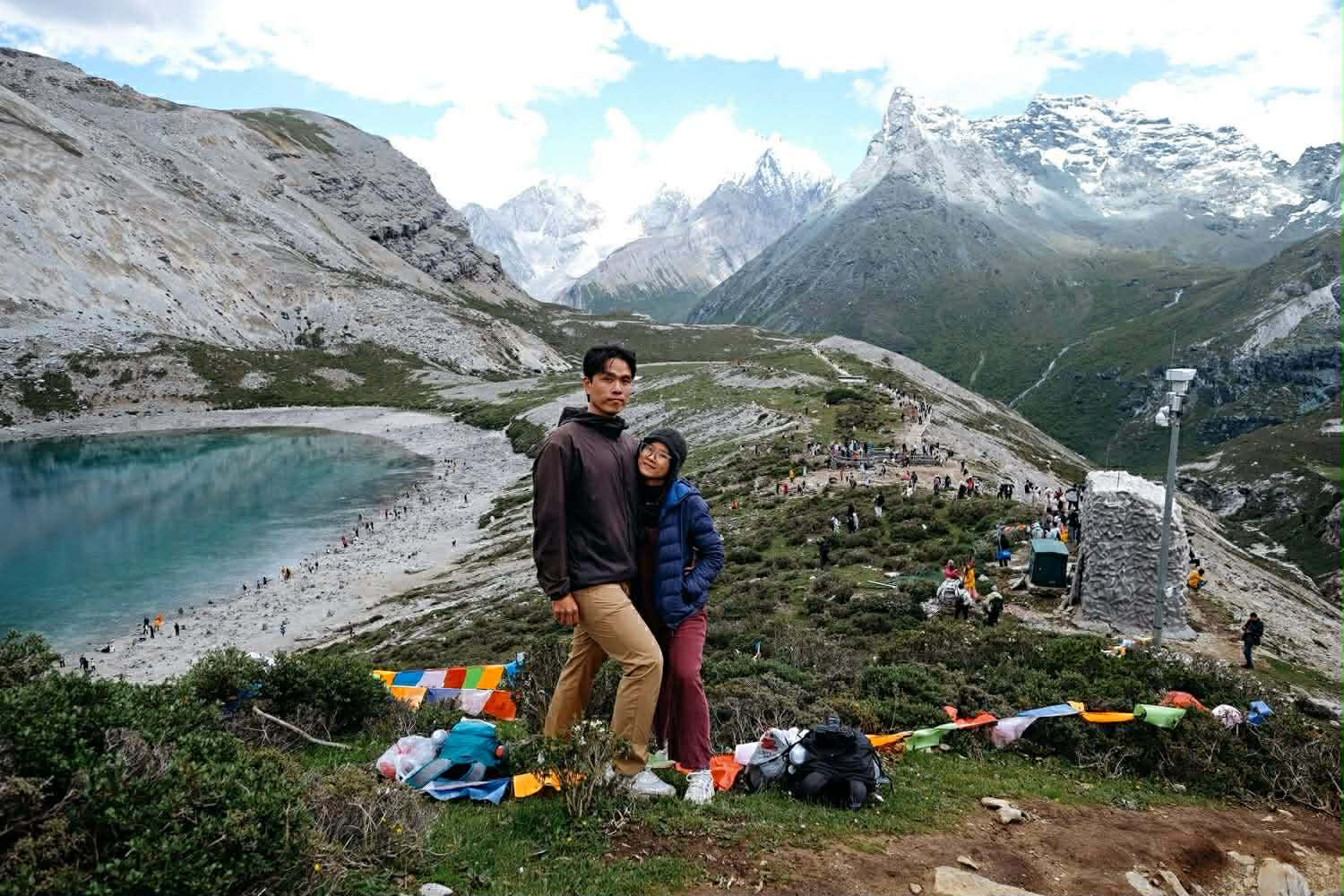 Nơi họ ấn tượng nhất tại Trung Quốc là Á Đinh - "thiên đường hạ giới" với những hồ nước đẹp khó tả bằng lời như Trân Châu, hồ Sữa, hồ Ngũ Sắc. Cặp đôi trekking qua cung đường núi cao hơn 4.000m để chiêm ngưỡng trọn vẹn vẻ đẹp vùng đất.