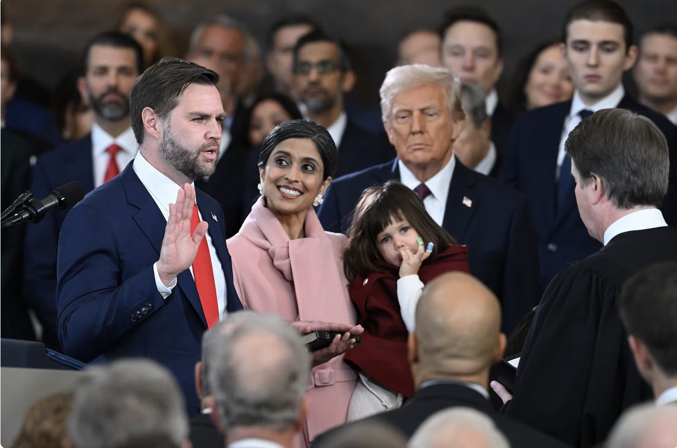Ông JD Vance và vợ khi nhậm chức Phó Tổng thống Mỹ. Ảnh: UPI