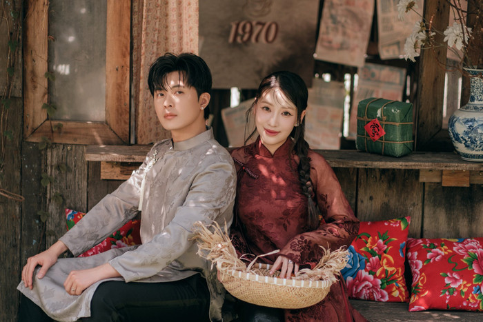 Puka và Gin Tuấn Kiệt "tình bể bình" trong bộ ảnh áo dài. Ảnh: FBNV