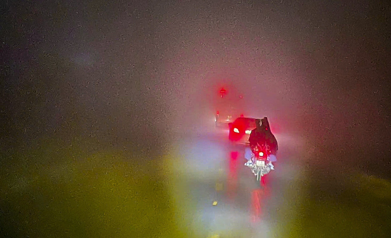 Đêm đến, sương mù che lấp tầm nhìn khiến việc di chuyển của các phương tiện gặp khó khăn và nguy hiểm.