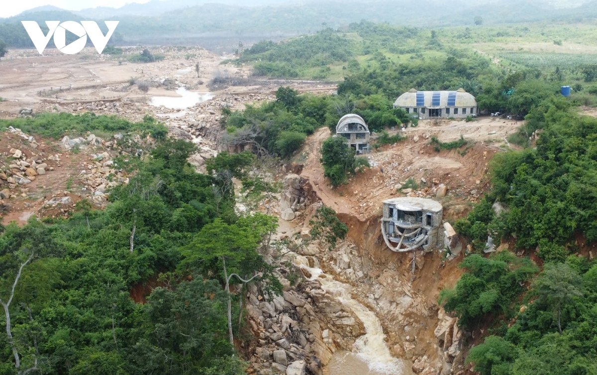 Vị trí đập nước bị vỡ trên núi Tân Lai, xã Tuy Phong, tỉnh Lâm Đồng gây ra lũ quét