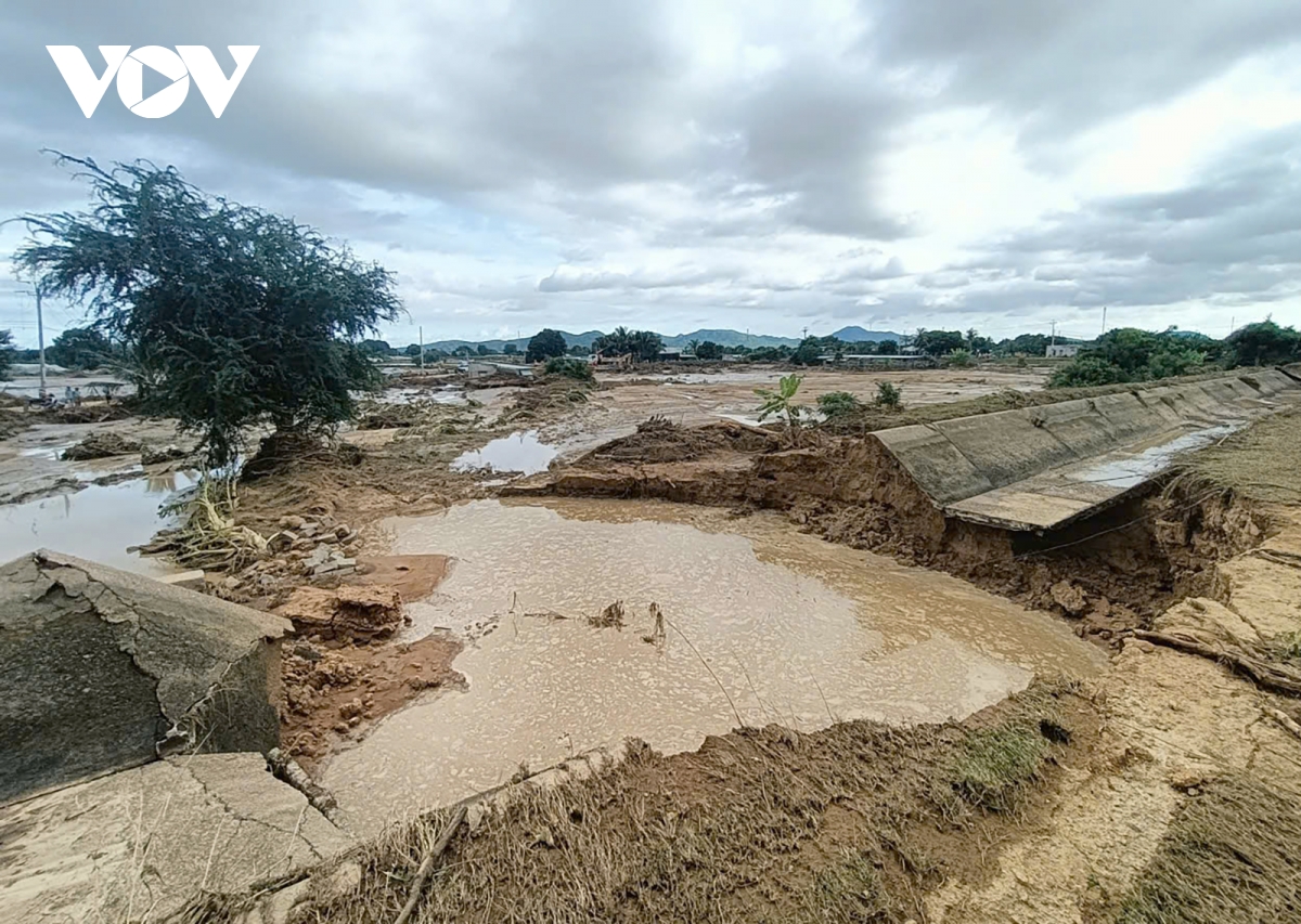 Lũ quét từ vụ vỡ đập hồ chứa trên núi Tân Lai khiến kênh mương thủy lợi và đồng ruộng của người dân bị cuốn trôi, hư hỏng