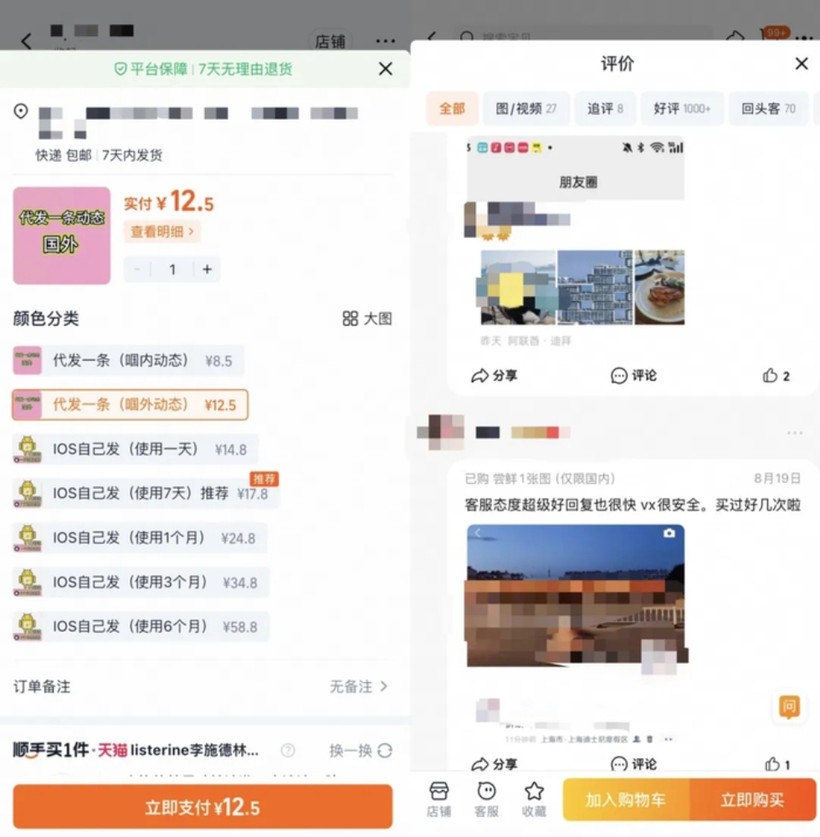 Một số người bán dịch vụ này cũng cung cấp các gói đăng ảnh “trọn gói cả ngày” (giả) lên WeChat Moments với giá 50 - 60 NDT. Những người bán dịch vụ chuyên nghiệp cũng cung cấp ảnh "cao cấp", chẳng hạn như ảnh ngồi ghế máy bay hạng nhất và ảnh ở sân golf, với giá cao gấp đôi ảnh thông thường. Khách hàng thường xuyên của họ chủ yếu là những KOL chưa mấy nổi tiếng.