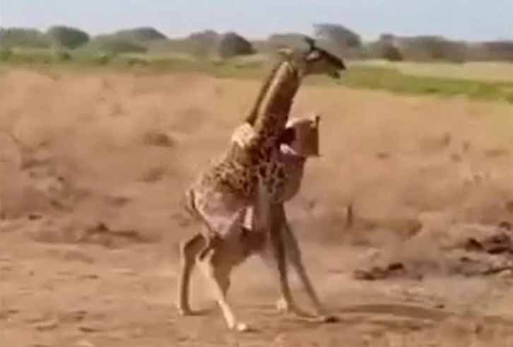 Tuy nhiên, khi con mồi tưởng chừng không còn cơ hội sống sót, hươu cao cổ mẹ bất ngờ xuất hiện. Chứng kiến con non gặp nạn, con vật lập tức lao tới đối đầu với sư tử, buộc kẻ đi săn phải hoảng sợ tháo chạy.