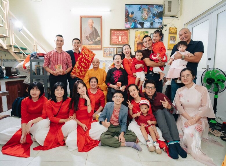 Đáng chú ý, hai con của nữ ca sĩ là bé Moon và bé Milo cùng các cháu trong nhà đều được diện áo dài đỏ truyền thống. Hình ảnh các thành viên xếp hàng ngay ngắn để đợi nhận lì xì từ ông bà đã tái hiện một khung cảnh sum vầy, giữ trọn nét đẹp văn hóa phương Đông trong những ngày đầu xuân.