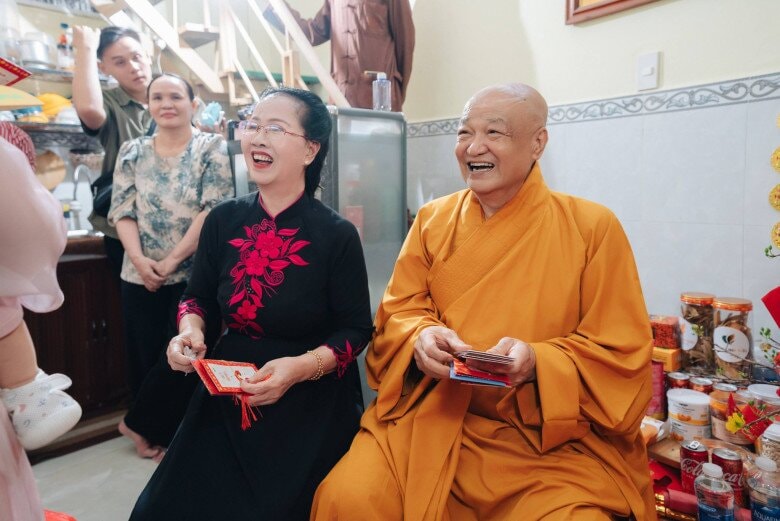 Gia đình Võ Hạ Trâm duy trì truyền thống thăm bố ruột tại chùa vào mỗi dịp đầu năm mới.