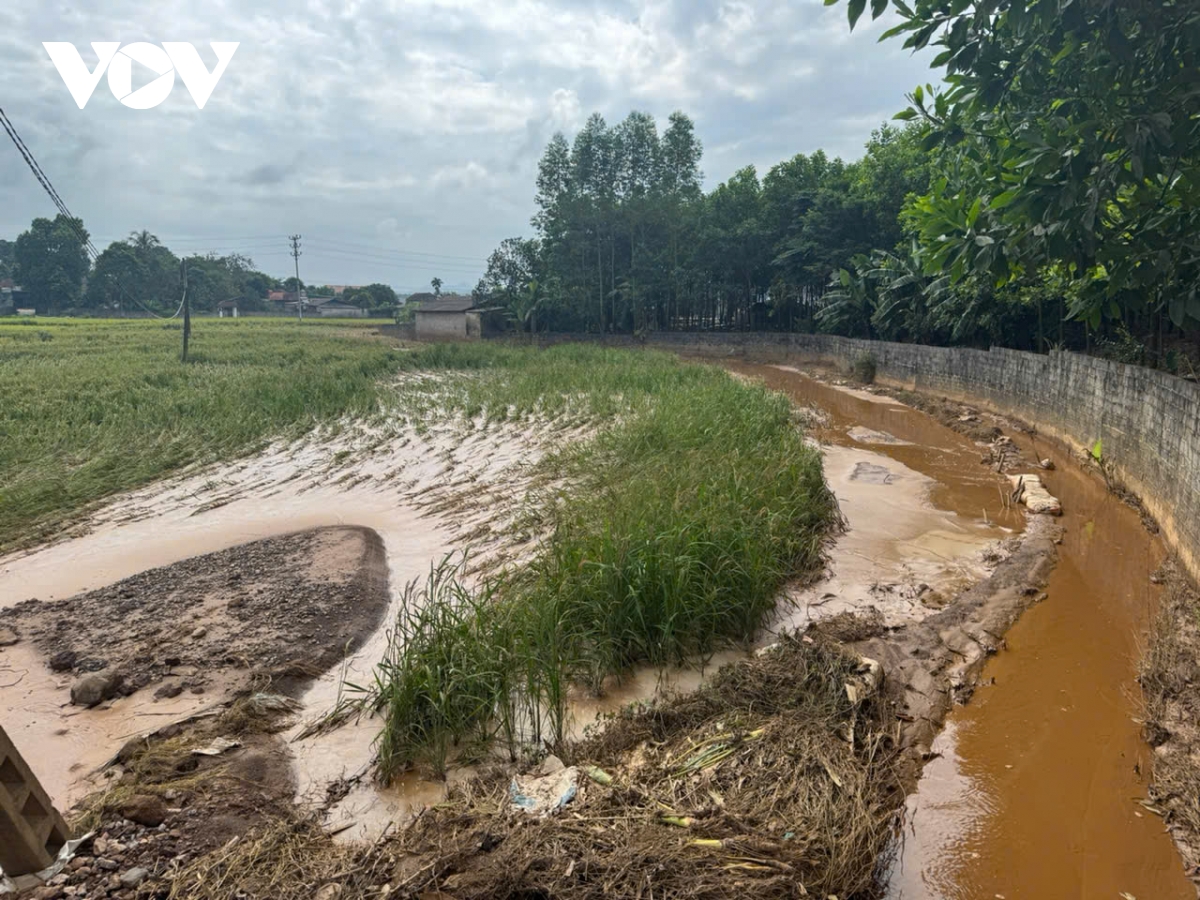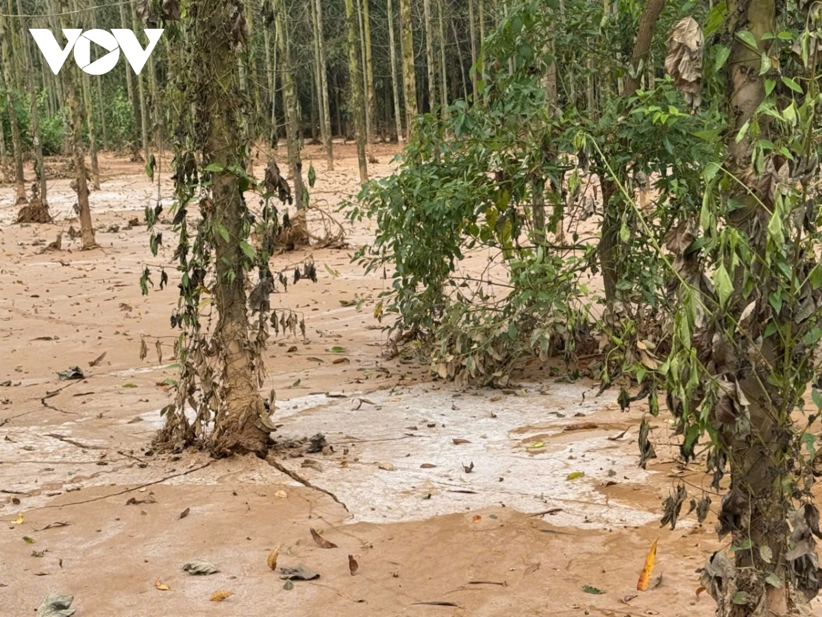 Sơ bộ, có hơn 30 hộ dân bị ảnh hưởng bởi sự cố, chủ yếu là thiệt hại về tài sản, hoa màu và diện tích canh tác. Một số khu vực vẫn còn ngập sâu trong lớp bùn đặc, bốc mùi hắc, nồng, gây lo ngại về môi trường và sức khỏe.