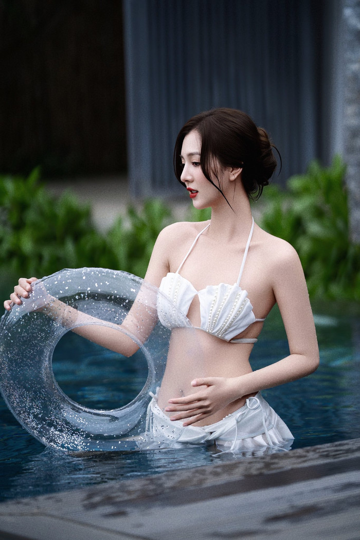 Trong bộ ảnh, Tuệ Như mặc bikini hai mảnh màu trắng nổi bật, khoe trọn vóc dáng thon thả và làn da trắng mịn sau một lần sinh nở. Visual rạng rỡ cùng thần thái tự tin giúp bà mẹ một con nhận được “cơn mưa” lời khen. “Đẹp quá chị ơi”, “Xin vía dáng xinh ạ”, “Đúng là gái một con trông mòn con mắt”,...
