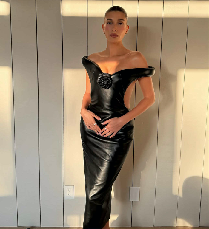 Được biết, bộ trang phục Hailey Bieber mặc là một thiết kế đến từ nhà mốt Mugler. Chất liệu da đen bóng cùng phần cắt xẻ táo bạo giúp người mẫu sinh năm 1996 khoe trọn lợi thế vóc dáng, vừa gợi cảm vừa sang trọng.
