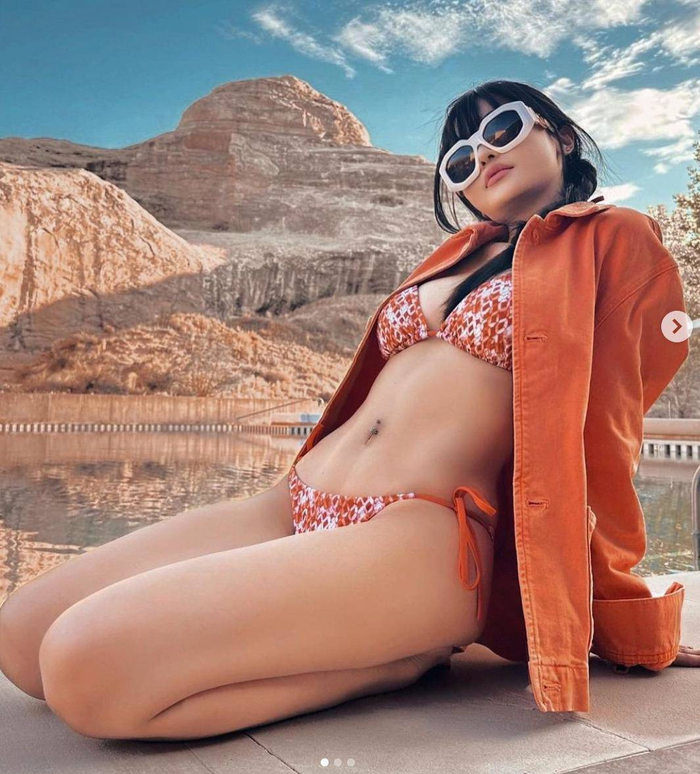Cô cũng ưa chuộng mẫu đồ tắm xẻ ngực sâu và khoét hông cao.