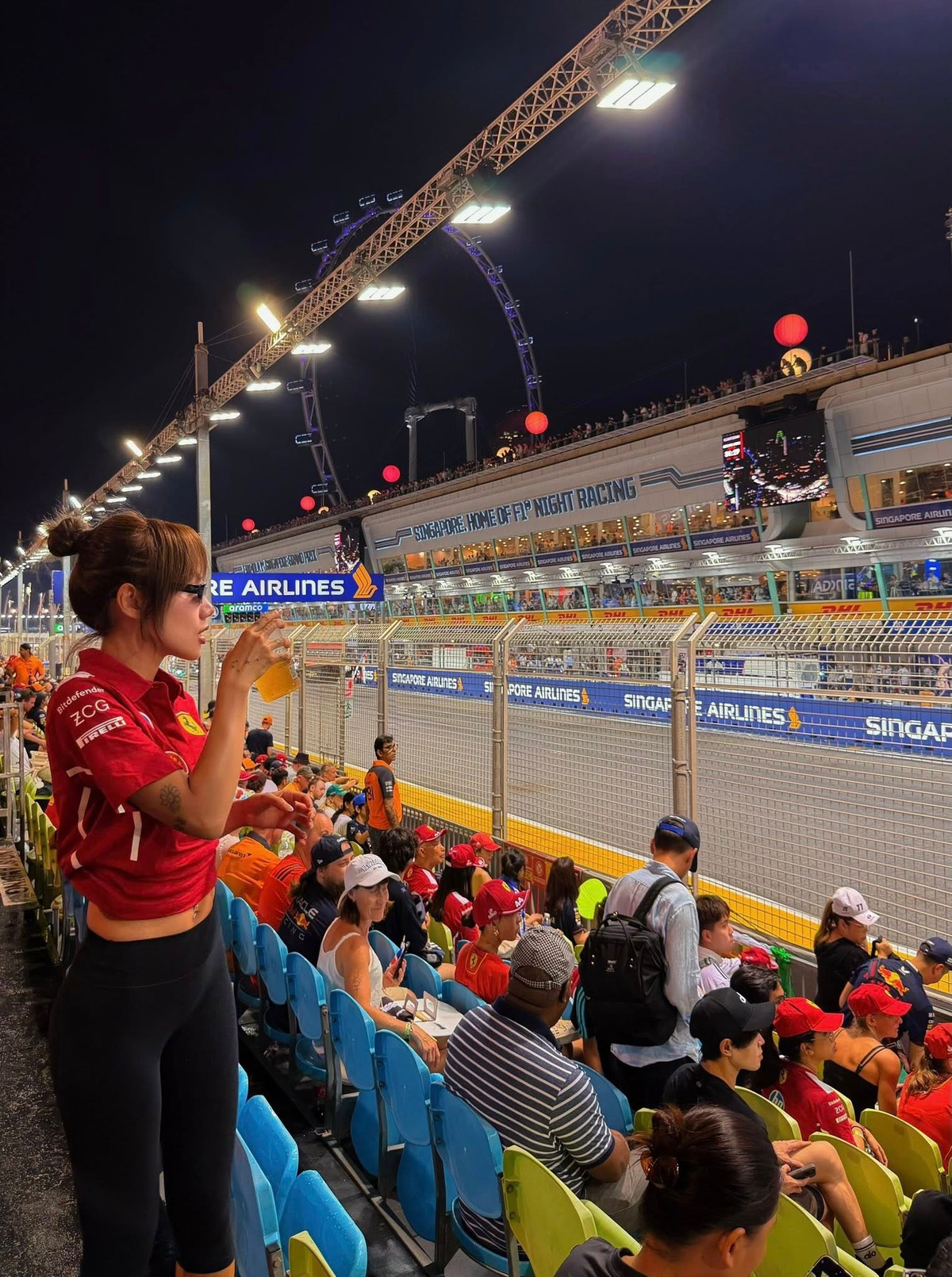 F1 Singapore Grand Prix 2025 năm nay đã thu hút rất nhiều sự chú ý không chỉ của mỗi giới mê tốc độ mà của còn đông đảo khán giả. Trên trang cá nhân của mình, nữ ca sĩ Phương Ly cũng hào hứng đăng tải khoảnh khắc cô nàng check-in tại đường đua Marina Bay Street Circuit sôi động. (Ảnh: IGNV)