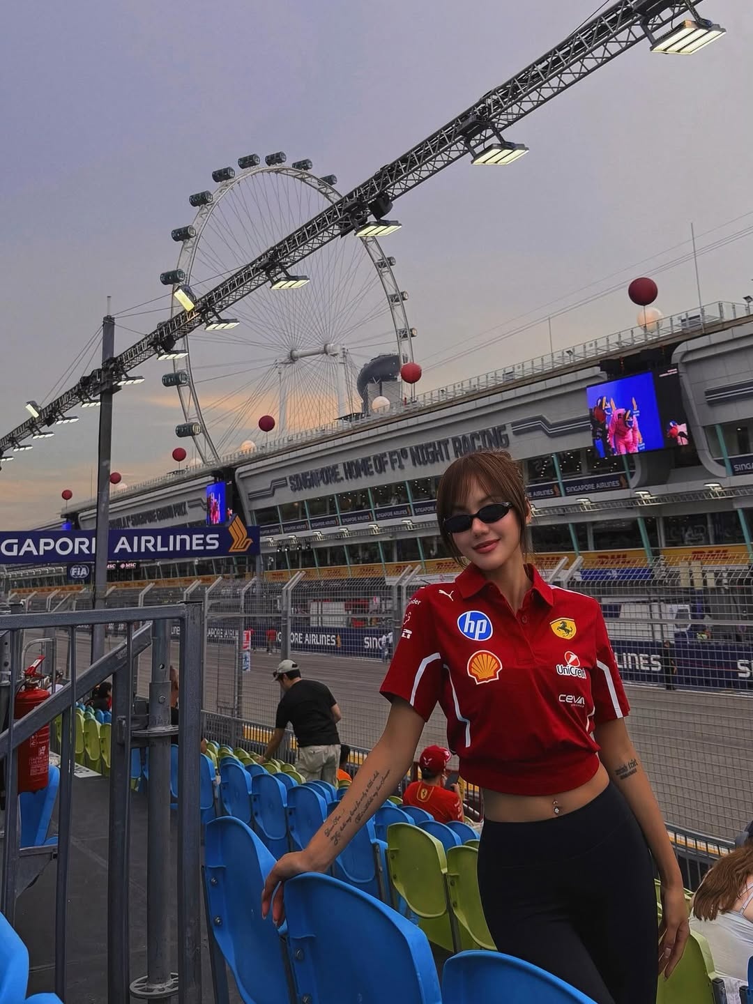 Với màu da mới, Phương Ly linh hoạt ứng dụng trang phục mang màu sắc trung tính và sặc sỡ. Bên cạnh váy áo trắng, đen, xám trên sân khấu, khi dạo phố, cô cũng diện áo polo đỏ nổi bật khi đi xem Giải đua xe F1 tại Singapore. Mẫu áo được cột lên cao, phù hợp với phong cách khỏe khoắn và cá tính của nữ ca sĩ. Nhìn chung, trang phục của Phương Ly có phần năng động hơn sau khi thay đổi màu da.