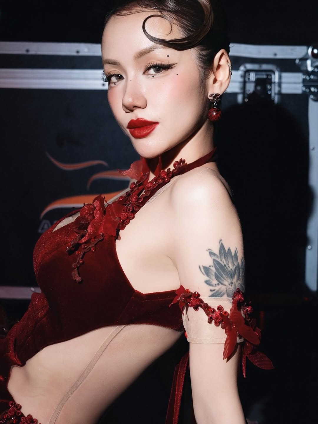 Trước đó, hình ảnh của Phương Ly gắn liền với làn da trắng sáng. Trên sân khấu chương trình Em Xinh Say Hi, cô từng gây chú ý với nước da phát sáng khi diện váy đỏ, khoác áo lông đồng màu và tô son đỏ rực. Tạo hình quyến rũ kiểu Á Đông của Phương Ly nhận về nhiều lời khen ngợi. Trước đó, nữ ca sĩ cũng nhiều lần diện trang phục đỏ nổi bật khi trình diễn trên sân khấu, trong đời sống hàng ngày. Đặc biệt, sắc đỏ cũng tương đối phù hợp với màu tóc bạch kim của Phương Ly hồi năm ngoái.