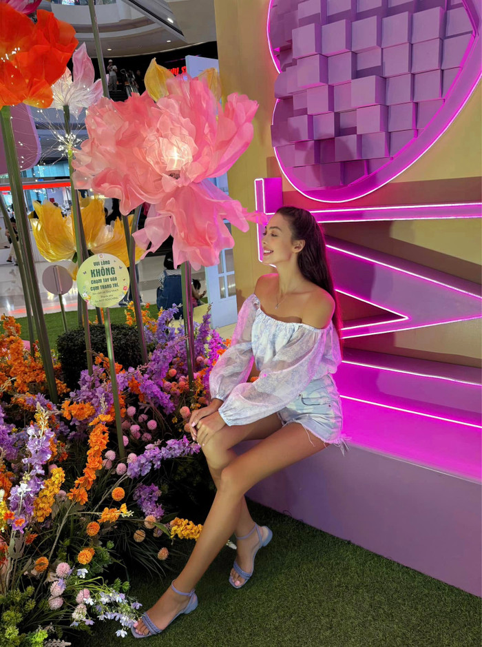 Dù theo phong cách nữ tính hay cá tính, cô luôn biết cách tạo điểm nhấn bằng việc khéo léo khoe đôi chân dài miên man, vốn là lợi thế giúp cô nổi bật giữa dàn WAGs Việt.