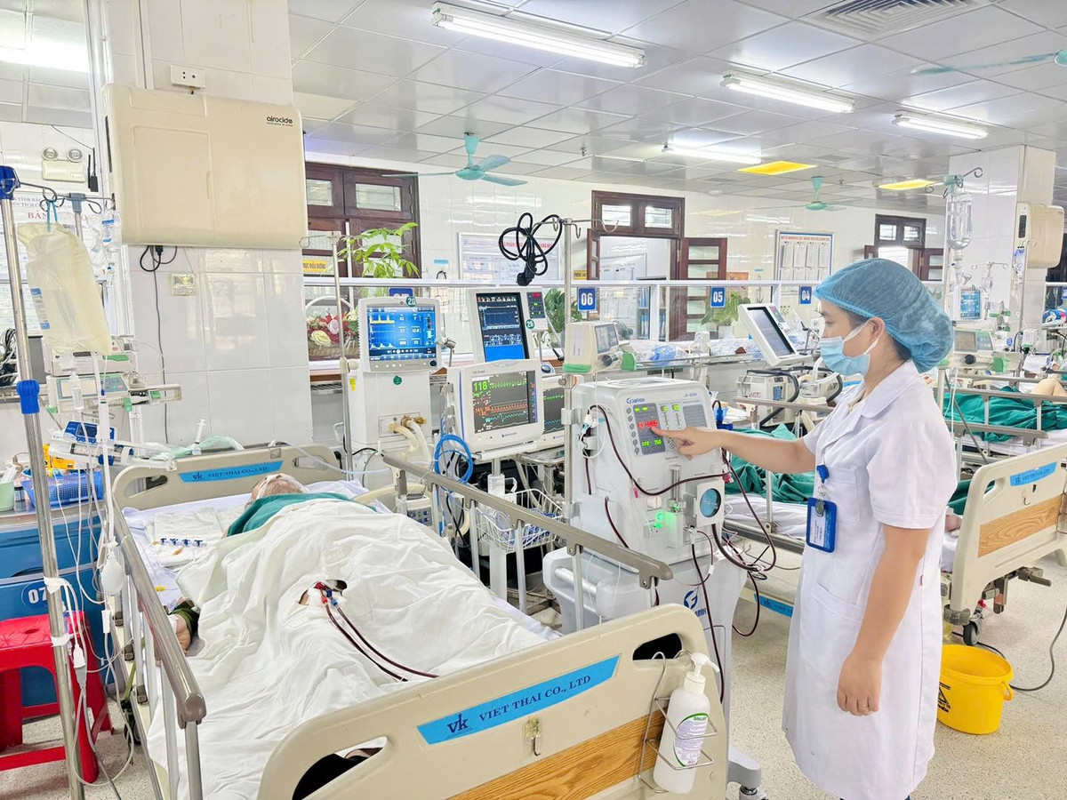Đến sáng 5/11, kết quả xét nghiệm cho thấy chỉ số CK trong máu tăng gấp 160 lần, men gan cao hơn 40 lần so với bình thường, biểu hiện tiêu cơ vân cấp và suy đa tạng tiến triển, tiên lượng rất nặng. Bệnh nhân được chỉ định lọc máu hấp phụ kết hợp lọc máu liên tục để loại bỏ độc chất và hỗ trợ chức năng các cơ quan.