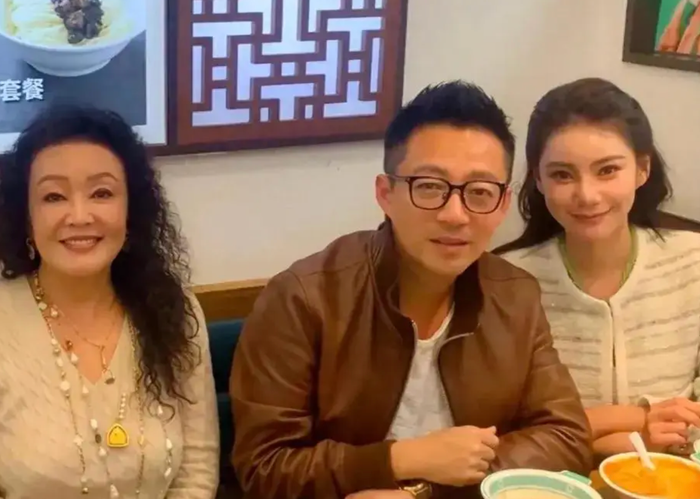 Vợ Uông Tiểu Phi được lòng mẹ chồng, bà Trương Lan cũng vui vẻ chụp hình mỗi khi xuất hiện cùng con trai và con dâu. Ảnh: Sohu