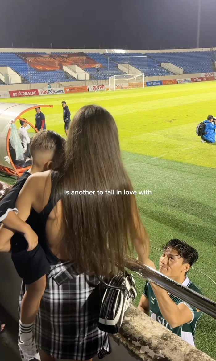 Mới đây, người mẫu Dianka Zakhidova – bà xã của thủ môn Bùi Tiến Dũng đã chia sẻ một đoạn video xúc động lên trang cá nhân, ghi lại những khoảnh khắc đầy tình cảm giữa cô, chồng và con trai tại sân vận động.