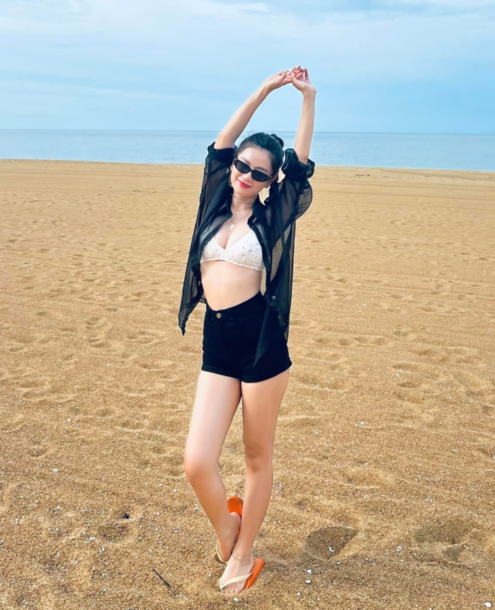 Rời xa những vai diễn kín đáo, Lê Hạ Anh "đốn tim" fan bằng những khoảnh khắc khoe dáng triệt để trong trang phục áo tắm. Ảnh: FBNV