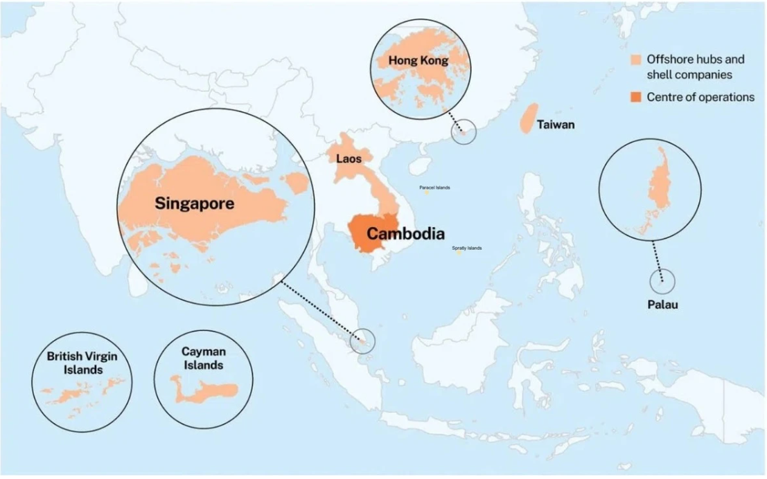 Các "chân rết" trong đế chế lừa đảo Prince Group của Trần Chí được vận hành tại nhiều quốc gia và vùng lãnh thổ. Ảnh: Business Times.