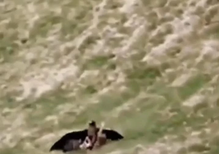 Theo hình ảnh được ghi lại, sự việc diễn ra trên một sườn núi hiểm trở. Mở đầu đoạn clip, con chó sói có kích thước khá lớn đang di chuyển dọc triền núi thì bất ngờ bị một con đại bàng vàng sà xuống tấn công. Từ độ cao lớn, đại bàng lao xuống với tốc độ chóng mặt, tung cú vồ đầu tiên bằng móng vuốt sắc nhọn, khiến con mồi mất thăng bằng và lăn xuống dốc.