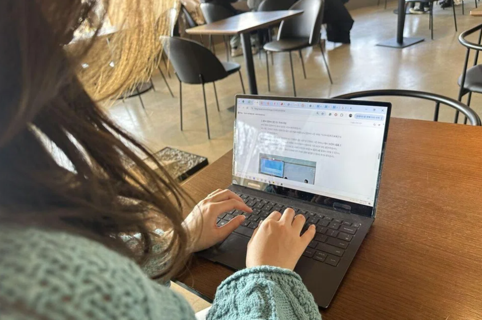 Cô Lee Ji-won, 34 tuổi, có công việc tay trái là viết blog để kiếm thêm thu nhập. Ảnh: Korea Herald