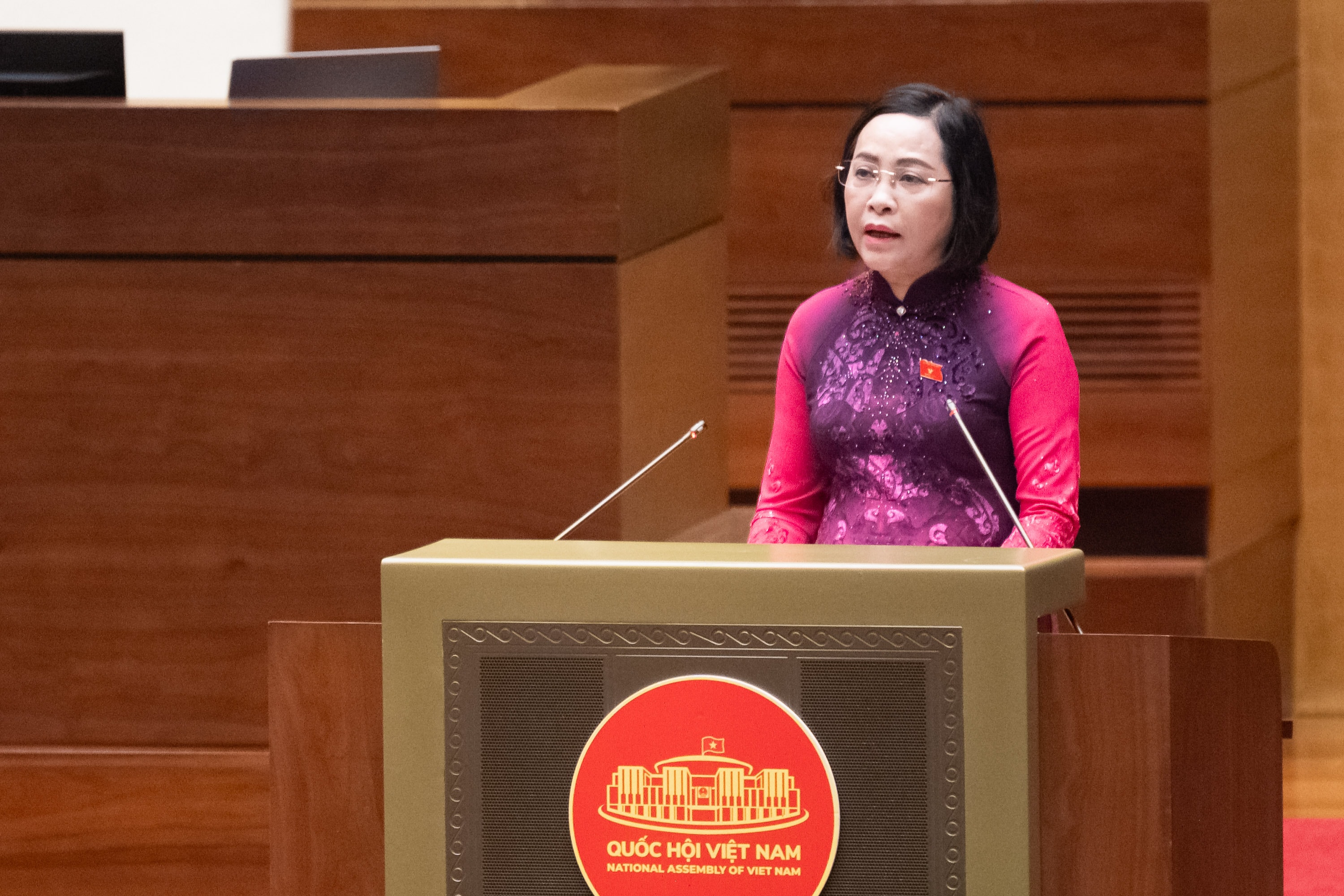 Phó Chủ tịch Quốc hội Nguyễn Thị Thanh, Ủy viên Hội đồng Bầu cử quốc gia báo cáo về kết quả bầu cử. Ảnh: Phạm Thắng