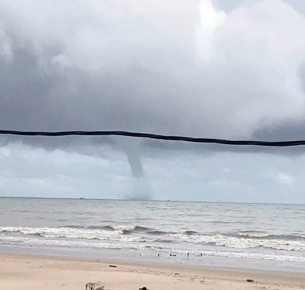 Khoảng 17h chiều nay, 29-10, một số người dân ở bãi biển Cam Bình, La Gi, tỉnh Lâm Đồng, đã dùng điện thoại ghi được cảnh tượng một vòi rồng cao hàng chục mét xuất hiện trên biển.