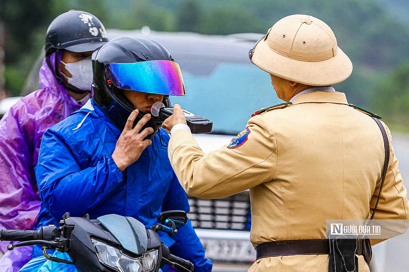 Lực lượng chức năng tiến hành kiểm tra nồng độ cồn đối với các tài xế.