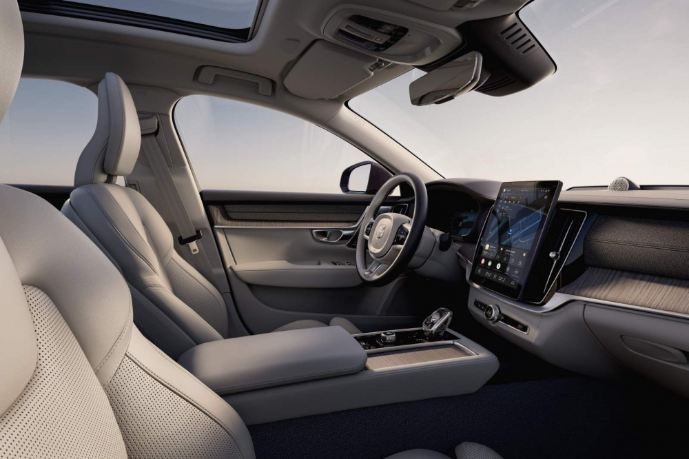 Nội thất của Volvo S90 là biểu tượng của triết lý thiết kế Bắc Âu, kiến tạo nên một chuẩn mực sang trọng mới. Mọi chi tiết đều được sắp đặt hoàn hảo trong tầm nhìn, tạo ra trải nghiệm đa nhiệm liền mạch và thanh lịch. Bảng táp-lô được bọc da vinyl với những chi tiết thủ công tinh xảo, hòa quyện đồng bộ với tấm ốp cửa, mang lại cảm giác thống nhất và đẳng cấp. Điểm nhấn nằm ở các chi tiết ốp gỗ được bố trí theo phương ngang đầy phá cách, kết hợp hài hòa cùng chất liệu vải dệt cao cấp từ 100% polyester tái chế, định hình một đường cong quyến rũ. Khi đêm xuống, hệ thống đèn viền nội thất tinh tế sẽ chiếu sáng bề mặt lõm này, tôn lên kết cấu vân gỗ tuyệt đẹp và tạo nên bầu không khí ấm cúng, thư thái. Bố cục cụm điều khiển, họa tiết lưới loa Bowers & Wilkins, và vô-lăng đều được thiết kế mới, đồng điệu với tinh thần của mẫu XC60.