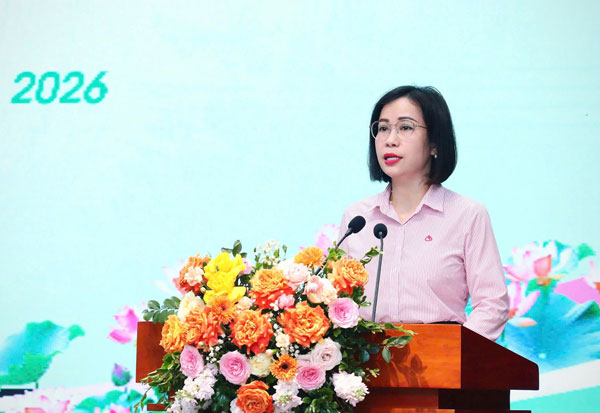 Phó Tổng Giám đốc NHCSXH Lê Thị Đức Hạnh báo cáo kết quả hoạt động quý I/2026