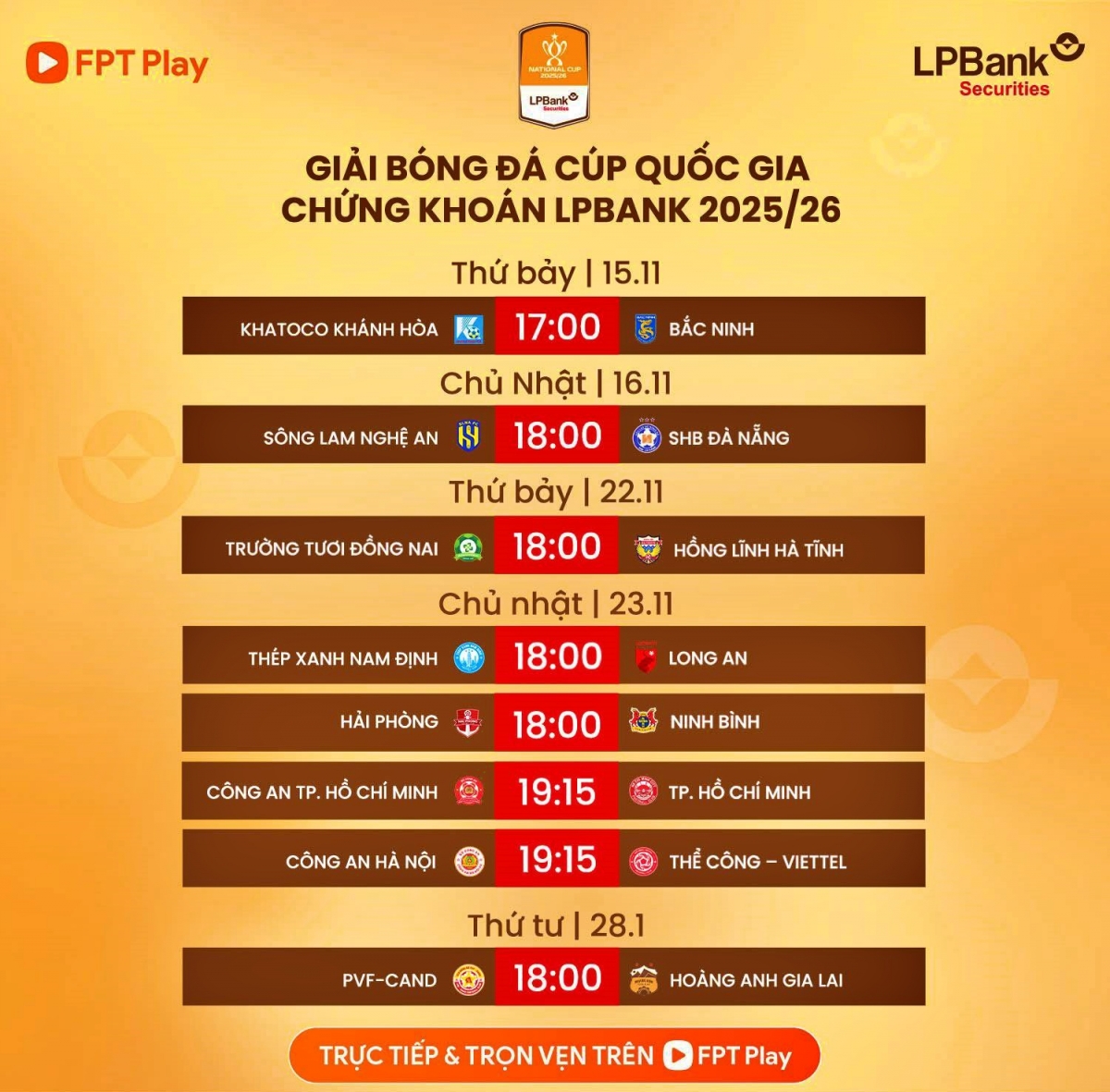 Lịch thi đấu vòng 1/8 Cúp Quốc gia 2025/2026.