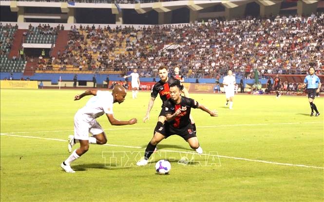 Đây là thời điểm để Ninh Bình (áo đen) chứng minh giá trị và bản lĩnh vượt khó của một ứng viên vô địch. Ảnh: TTXVN