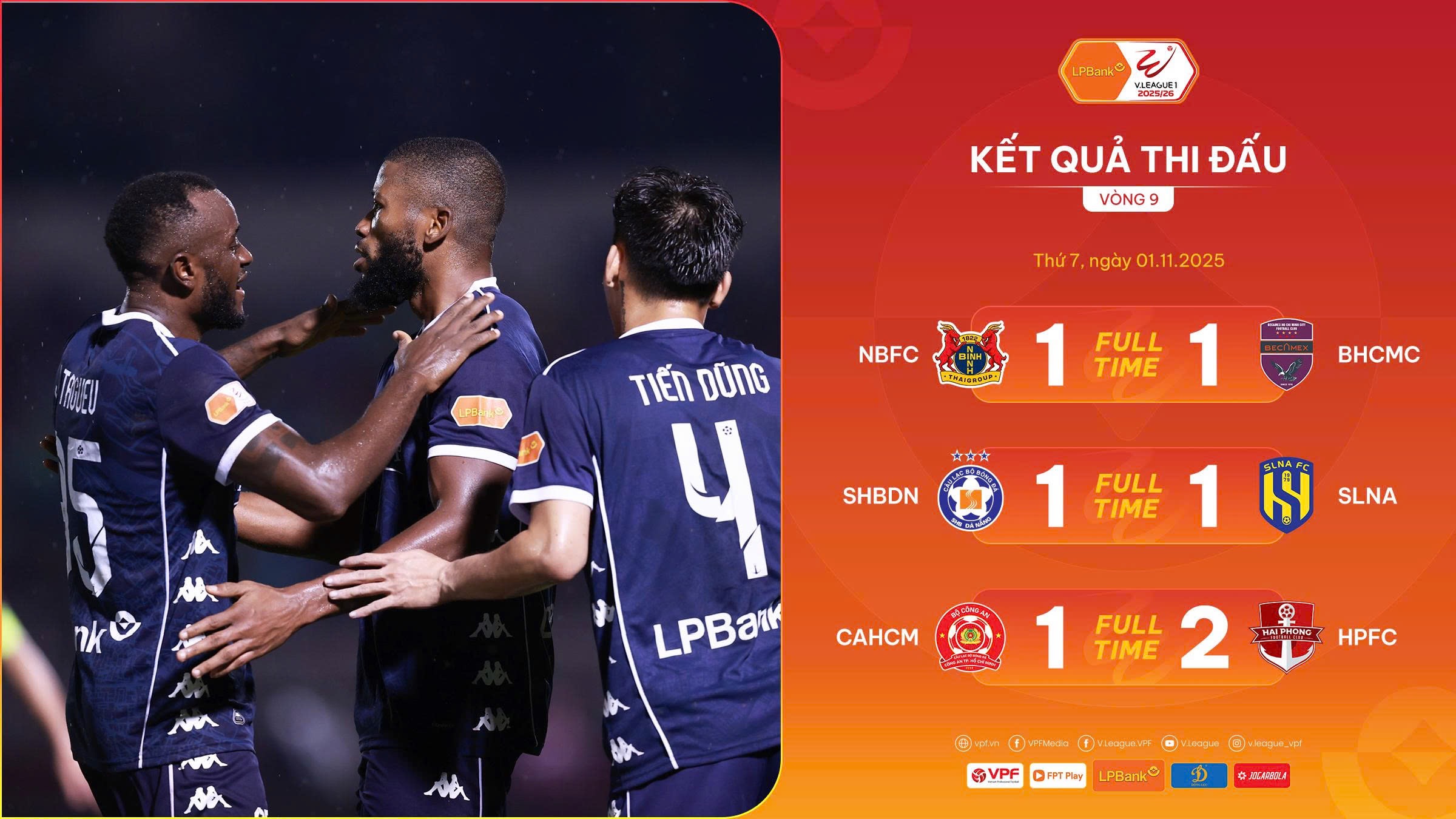 Vòng 9 trên sân Thống Nhất, CLB Công an TP.Hồ Chí Minh sớm có bàn thắng dẫn trước ngay phút 11 do công Quốc Cường. Nhưng đội chủ nhà không thể đứng vững thời gian còn lại của trận đấu, để CLB Hải Phòng ngược dòng giành chiến thắng 2 - 1 với 2 bàn thắng trong hiệp 2 do công Friday và Tagueu.