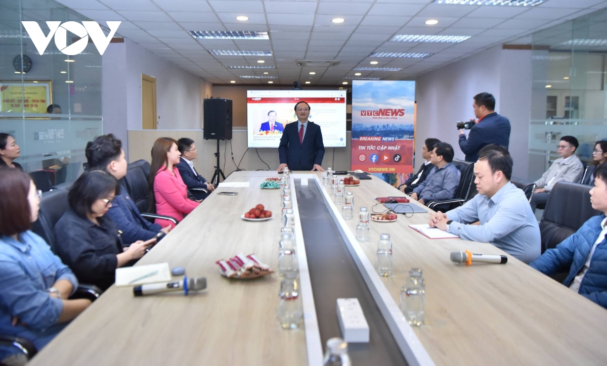 Tổng Giám đốc VOV Đỗ Tiến Sỹ đã đến kiểm tra, động viên các cán bộ, viên chức, người lao động Báo Điện tử VTC News đang thực hiện nhiệm vụ tuyên truyền Đại hội đại biểu toàn quốc lần thứ XIV của Đảng.