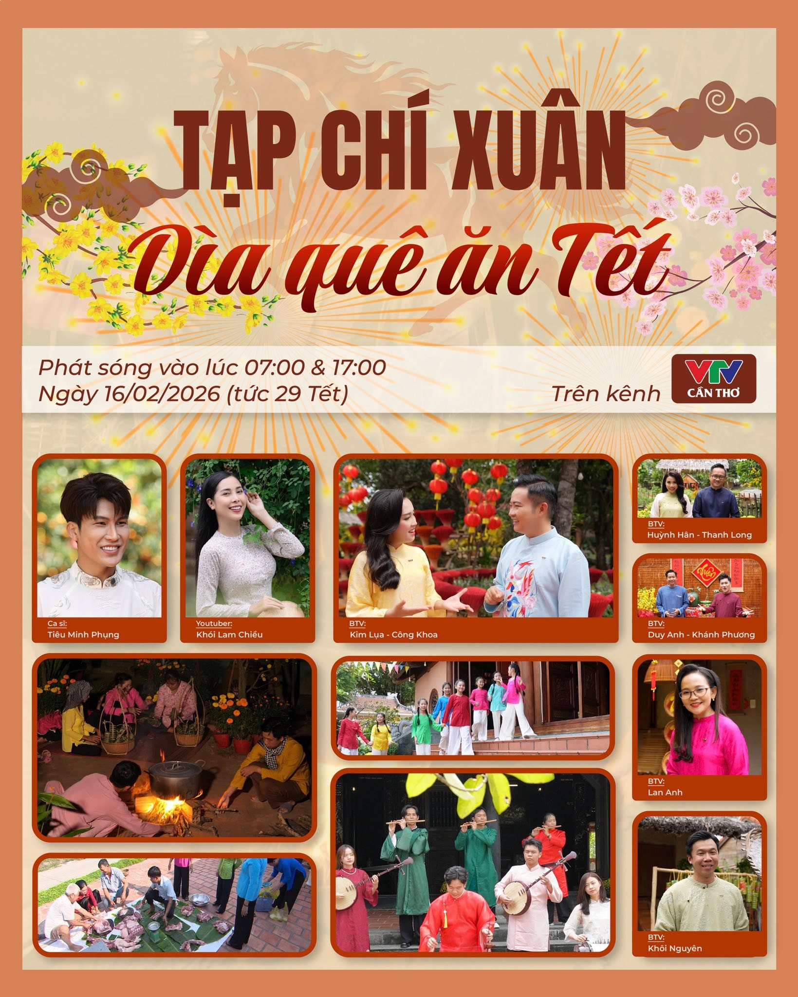 Đáng chú ý, hành trình này có sự đồng hành của nhà sáng tạo nội dung Khói Lam Chiều và nghệ sĩ cải lương Tiêu Minh Phụng. Qua những cuộc trò chuyện dung dị tại sạp trái cây hay bên khói bếp chiều 30, chương trình tái hiện sợi dây liên kết vô hình giữa người xa xứ với nếp nhà, với mùi khói bếp và tình làng nghĩa xóm đặc trưng của vùng sông nước.