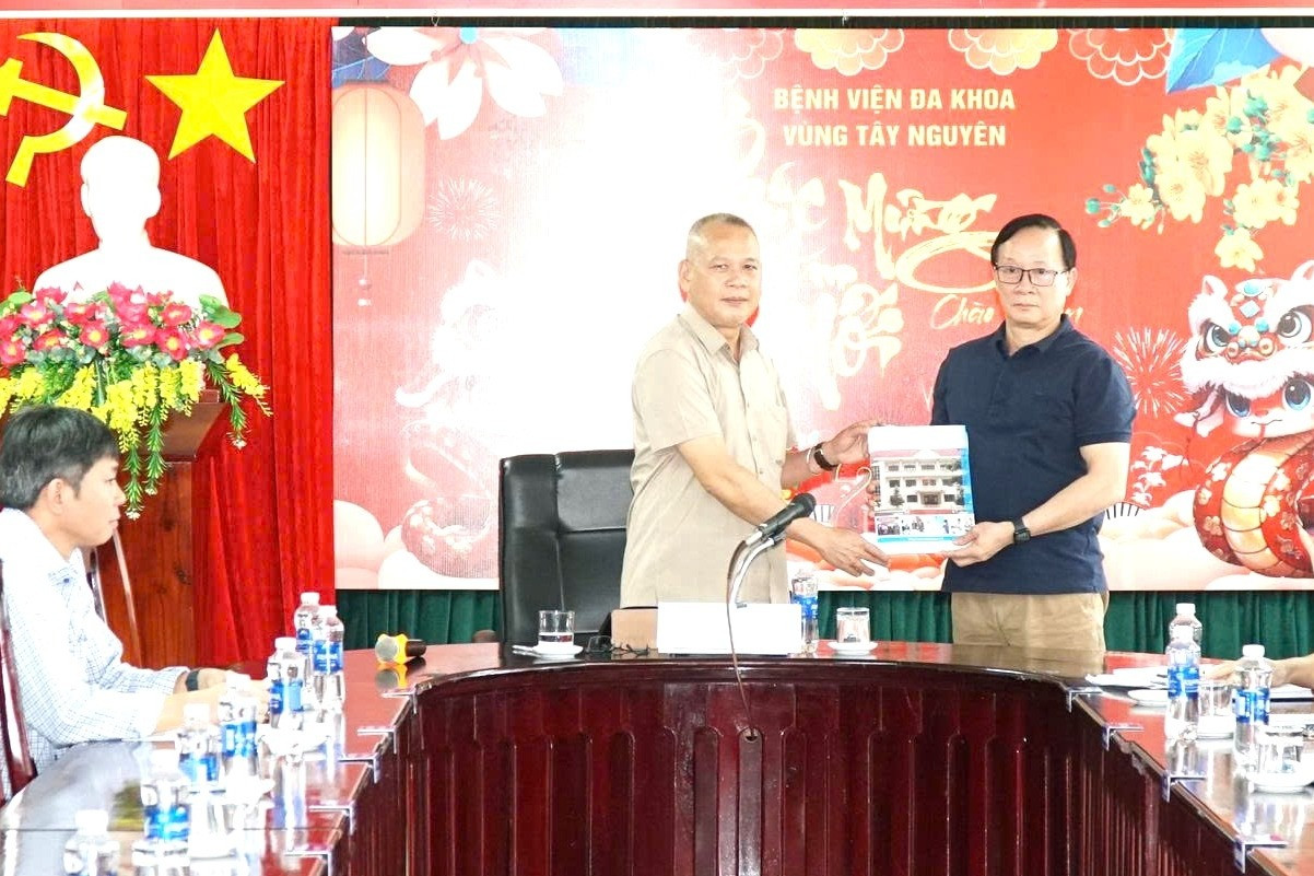 Bác sĩ Nguyễn Ngọc Thịnh (phải) nhận quyết định điều hành Bệnh viện Đa khoa Vùng Tây Nguyên. Ảnh: ML