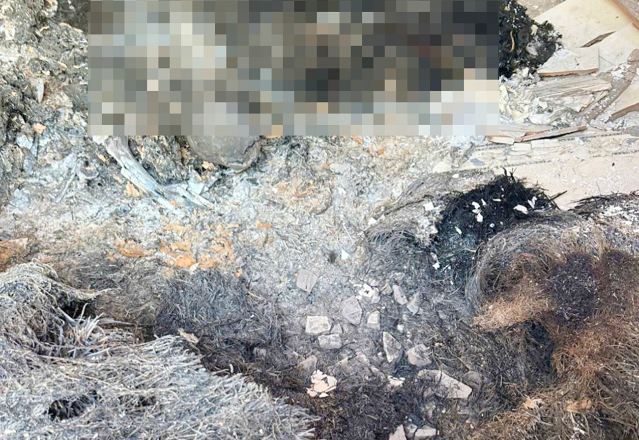 Tại hiện trường, ghi nhận có nhiều dấu vết nghi cháy nổ, có nhiều rơm bị cháy, mái tôn bị hư hỏng.