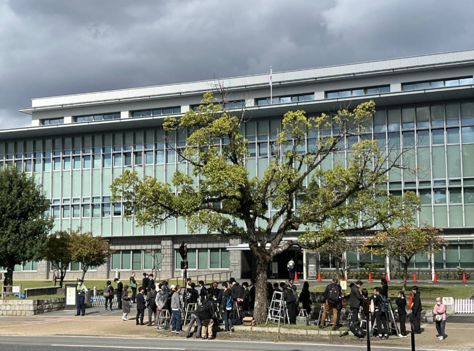 Khung cảnh bên ngoài Tòa án quận Nara ở thành phố Nara vào thứ Ba, vài giờ trước khi phiên tòa diễn ra.