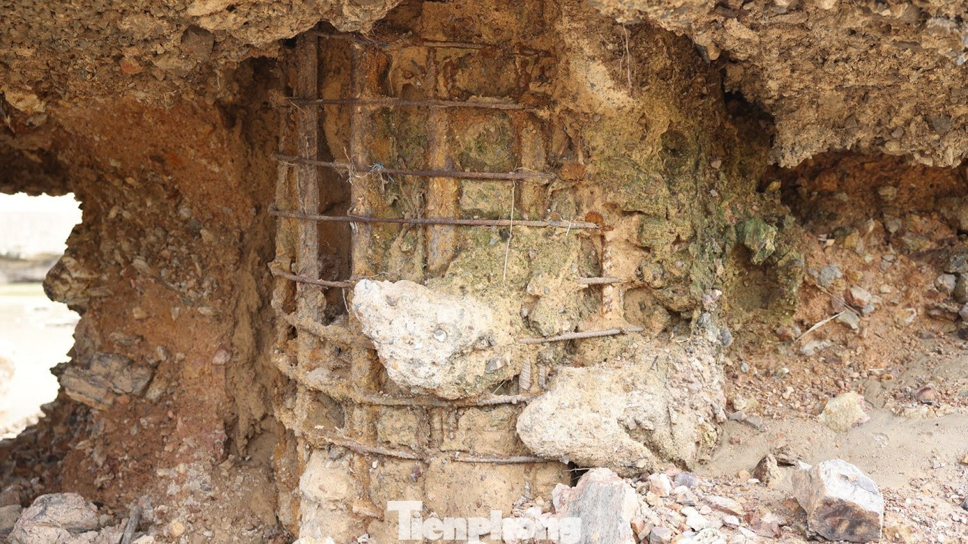 Trụ cầu Sông Lô bị lộ phần thép hoen gỉ. Ảnh: Đức Anh.