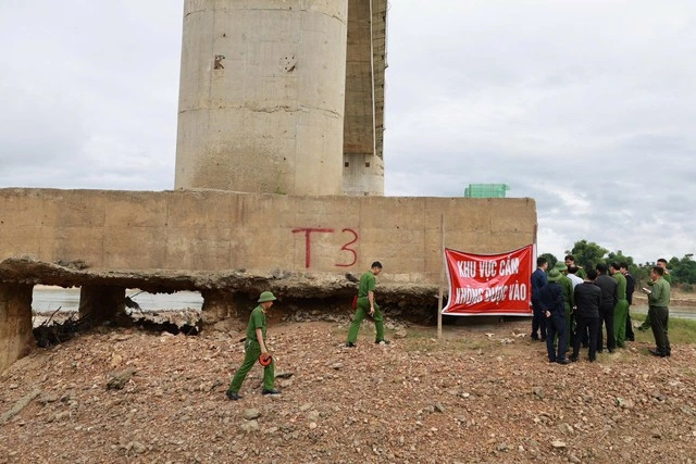 Công an kiểm tra thực tế trụ cầu Sông Lô trơ lõi thép gỉ sét