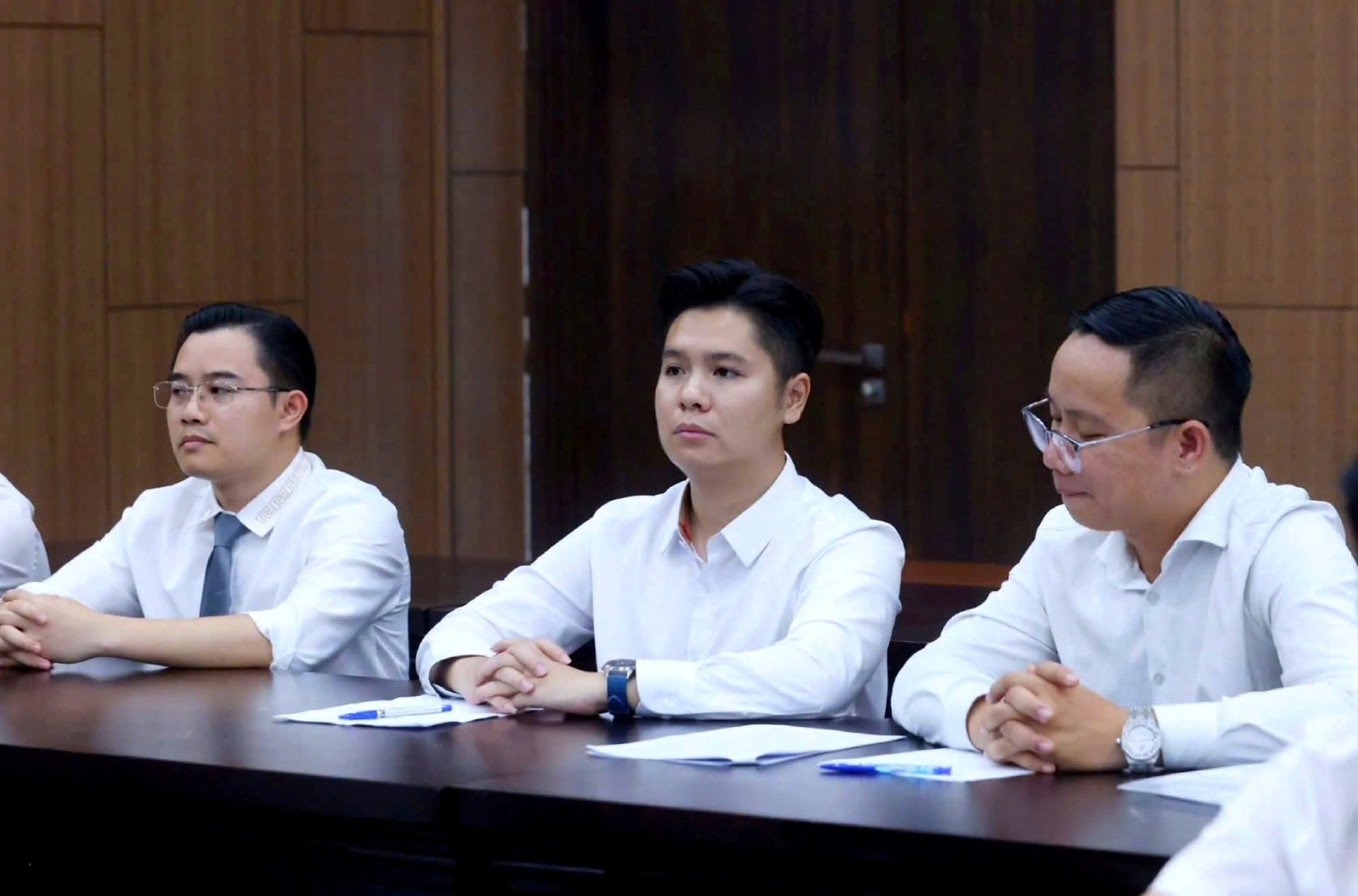 Luật sư Nguyễn Đức Thịnh (ngồi giữa) - người trực tiếp tham gia bào chữa trong vụ án.