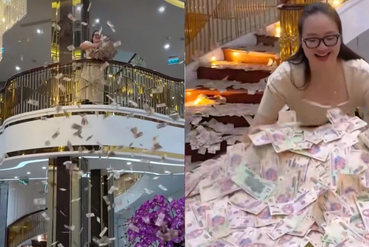 Đặc biệt, Hoàng Hường còn nhiều lần bày sẵn tiền trong nhà để quay clip bước đi trên những tờ tiền, gây phản ứng dữ dội. Trên mạng xã hội, bà cũng thường xuyên khoe sổ đỏ, vàng bạc, kim cương và xe sang để chứng minh sự giàu có, xa hoa. Những hình ảnh ấy khiến nhiều người tin tưởng rằng bà là một “đại gia thật sự”, qua đó dễ dàng thuyết phục khách hàng tin vào sản phẩm.